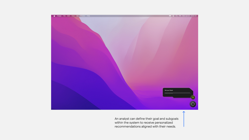 The goal input initially into the system enables the AI to better tailor recommendations according to the analyst’s needs.