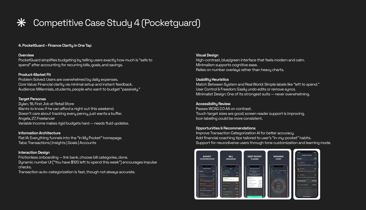 This expanded competitive matrix breaks down 12 financial apps based on their target users, UX goals, core features, strengths, weaknesses, design language, and accessibility considerations—offering a holistic view of how each product approaches financial education, autonomy, and inclusivity for diverse age groups, especially families, teens, and beginners.