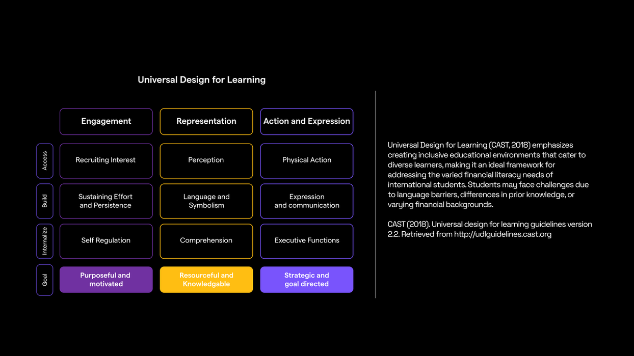 Establishing clear goals helped anchor the project in purpose and direction, aligning every design and research decision to a meaningful outcome. It ensured the solution addressed not just functionality, but emotional, cultural, and behavioral needs specific to international students’ financial journeys.